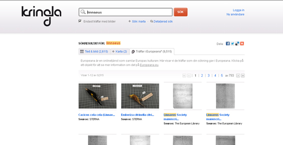 The online portal of the Swedish National Heritage Board (SOCH) www.kringla.nu allows users to search in both the national heritage repository ‘SOCH’ and the Europeana repository presenting the search results in different tabs.